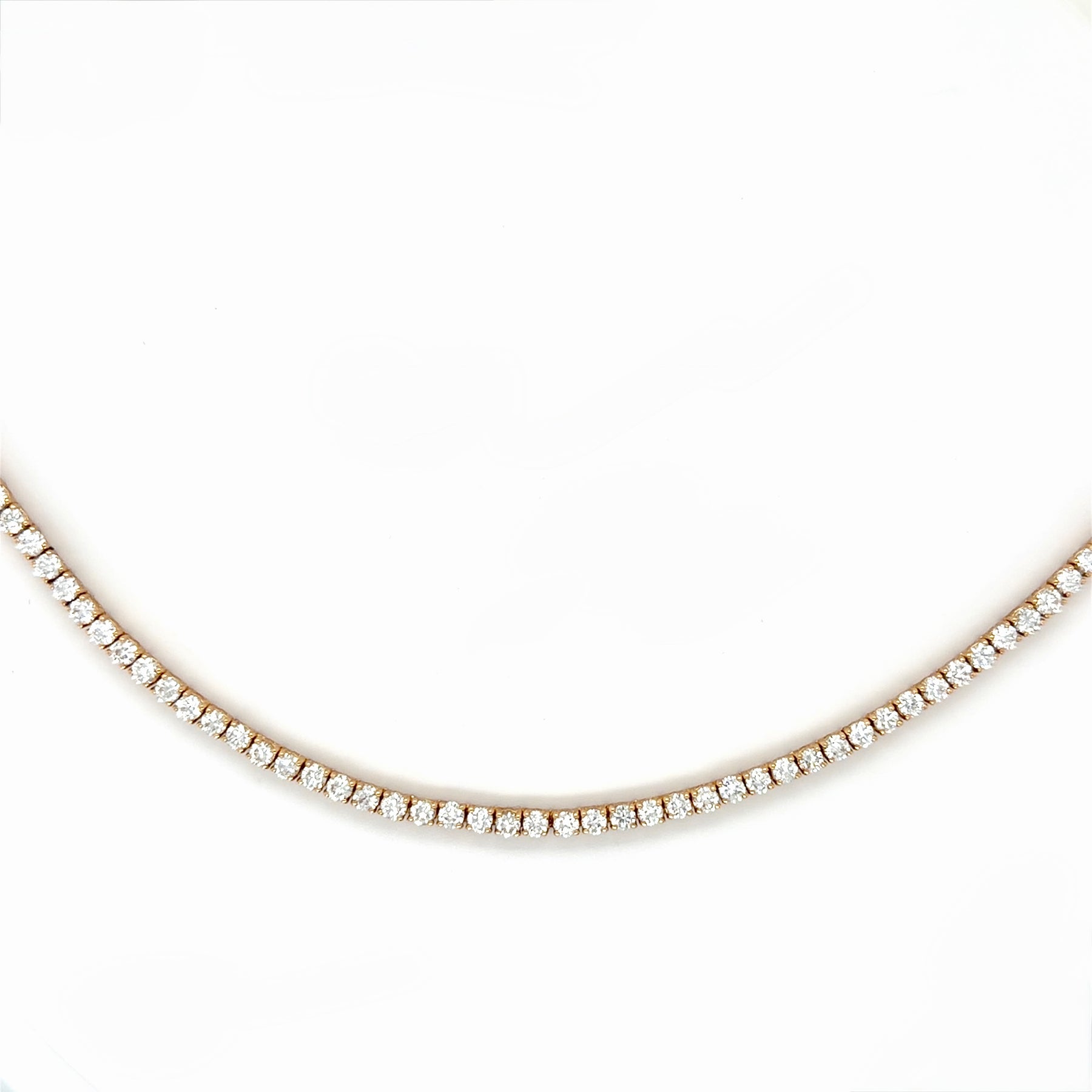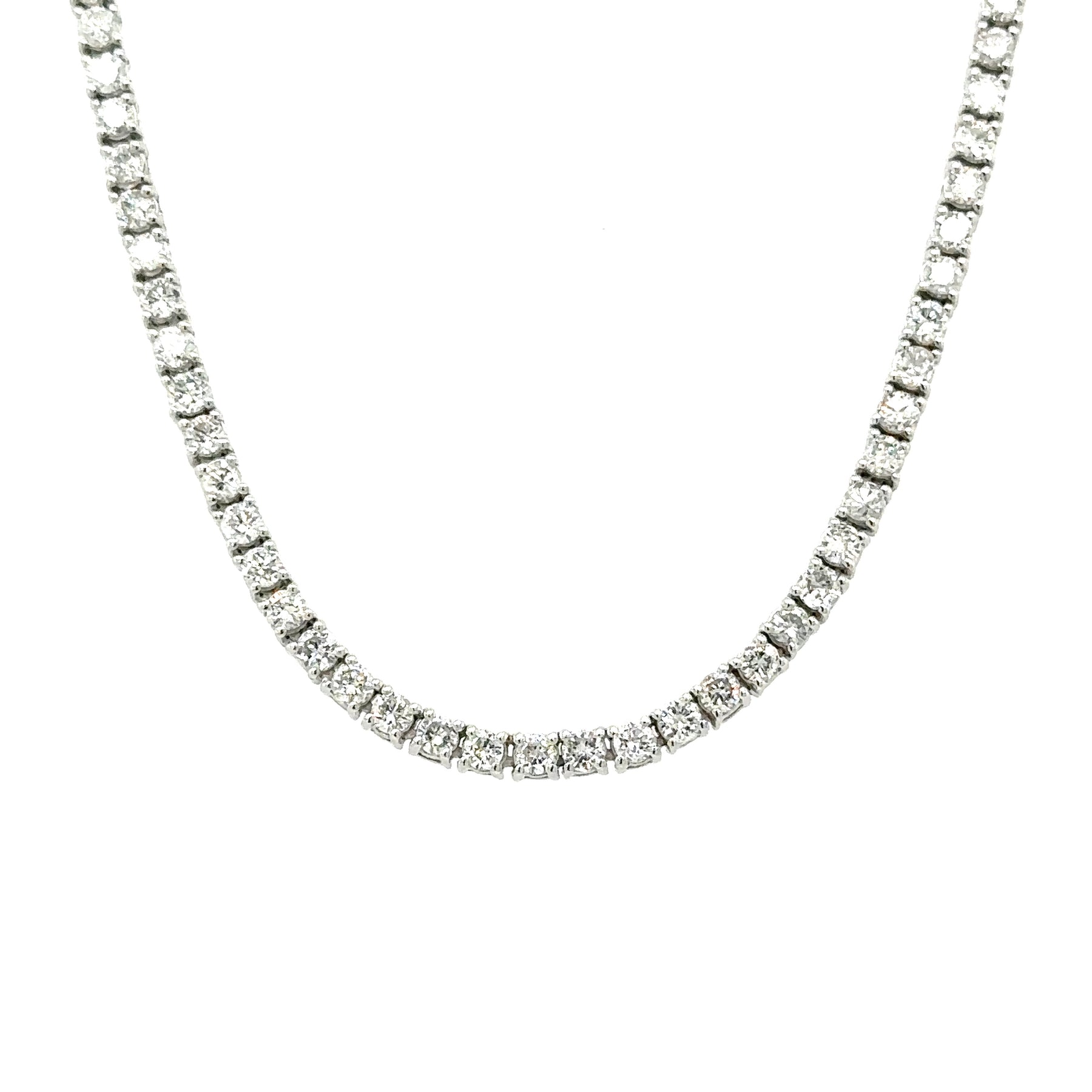 This stunning diamond tennis necklace is readily available in 14K White Gold and 18K Yellow Gold.