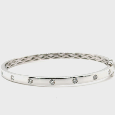 Our Kylie Bangle is an all time classic. Its robust setting makes it the perfect choice for everyday wear. Wear it alone or stack it with your favourite bracelets and/or watch.