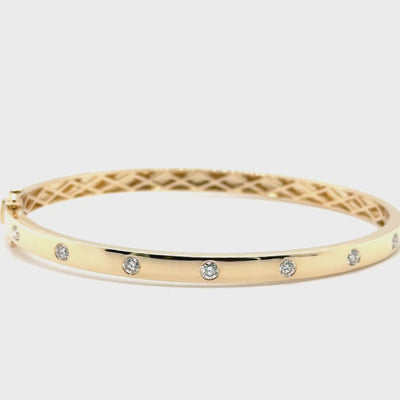 Our Kylie Diamond Bangle is made in 14k polished yellow gold